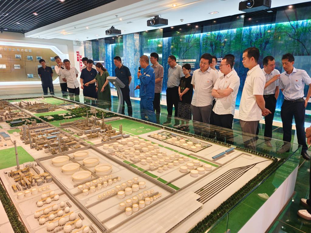 四川石化公司质量检测中心党委书记张关强带领大家参观四川石化公司模拟沙盘并观看宣传片。中国石油四川石化公司是西南地区首个特大型石油化工企业,包含1000万吨炼油、80万吨乙烯配套组成的炼化一体化项目,产品包括汽油、航空煤油等30余种,是国家实施能源战略布局和支持西部发展以点带面的特重大项目。