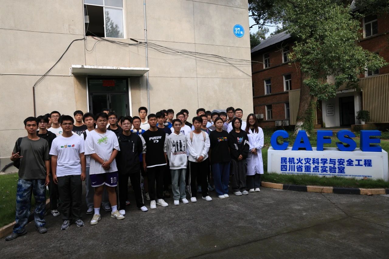 除了青春洋溢的体育活动,安工学院还特别组织了新生们走进了民机火灾科学与安全工程四川省重点实验室,带着好奇与憧憬,同学们参观了前沿的科研设备,亲身感受了科技的神奇与力量。不仅是一次视觉的盛宴,更是一次心智的启迪,激发了对专业探索的无限渴望。