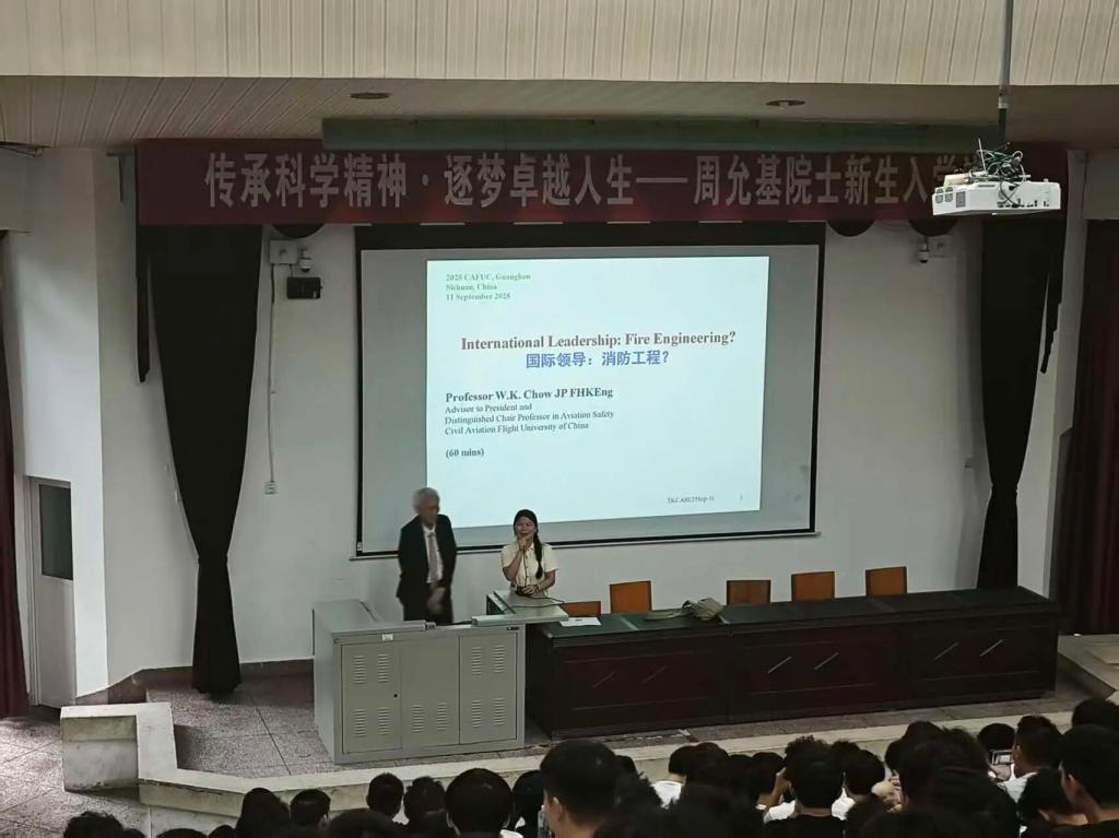 然后,周院士由大到小,由浅入深的向同学们介绍消防工程未来所从事的职业,并由此强调消防工程在民航行业中的重要地位。