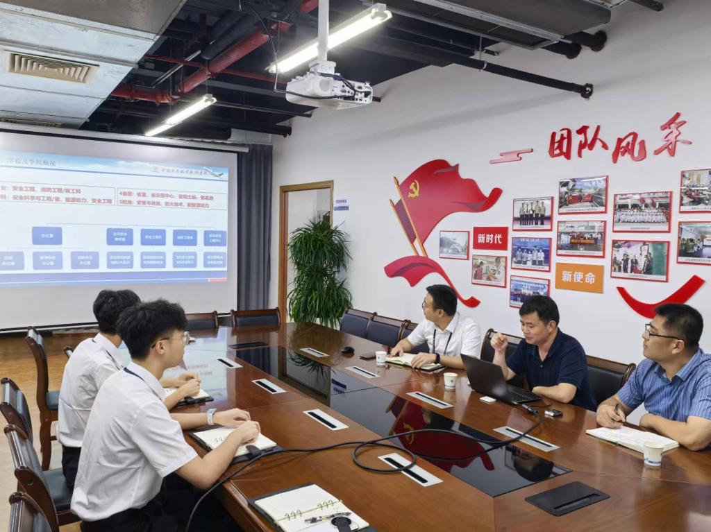 交流会上,消防救援部黄向阳经理对孔书记一行的到来表示热烈欢迎,他结合厦门新机场(厦门翔安国际机场)建设情况,详细介绍了消防救援部发展历程、消防救援设备、应急救援训练与教育培训、发展规划和新科技创新需求等重点工作。孔鹏书记详细介绍了安工学院学科专业发展及科技创新平台建设等总体情况,重点介绍了我院研发的国内首台全电机场消防车、机场消防救援VR战训平台等科技成果及消防工程专业建设情况。