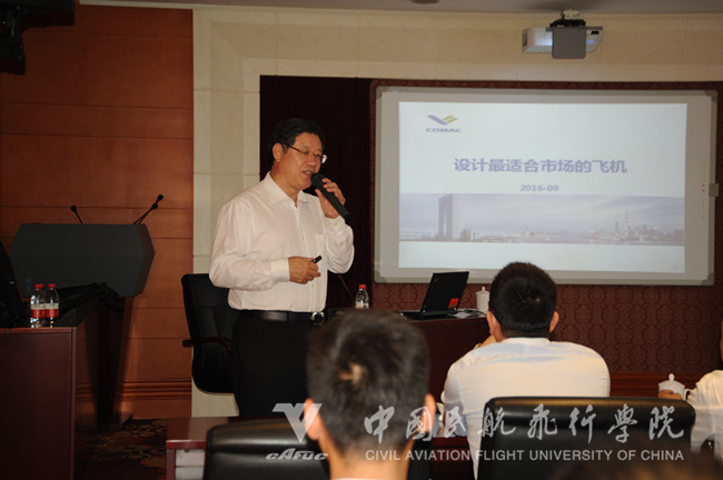 郭博智为师生们所作报告的题目是《设计最适合市场的飞机》。他用幽默风趣的语言,从需求捕获、飞机研制、试验验证三方面详细为在座师生们阐述了自己的观点,博得了在座师生的阵阵掌声。